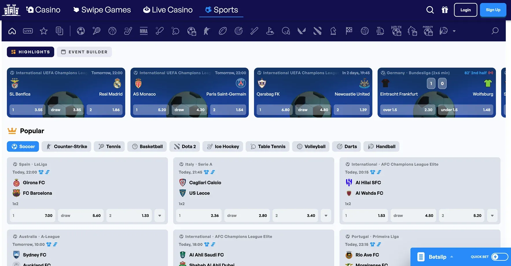 Skyhills sportsbook biedt een uitgebreid aanbod aan sportweddenschappen, waaronder football betting, tennis, basketbal en veel meer. Met skyhills live betting kun je tijdens wedstrijden inzetten en profiteren van de beste skyhills betting odds. Ons platform biedt in-play betting opties voor alle grote sportevenementen wereldwijd.